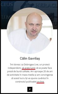 Astăzi nu mai există oameni care pierd timpul și de aceea n-am găsit pe nimeni dispus să-i dea ortograme lui Gavrilaș. Doi dintre colaboratorii săi mi-au transmis însă că nu este atât de prost și știe aproape toate literele. Cine îi analizează fotografia care riscă să strice faima publicației Dobrogea Live observă portretul unui biet închipuit care își dă tot salariul pe pastile. Situația este atât de gravă încât el însuși și-a mărit salariul.